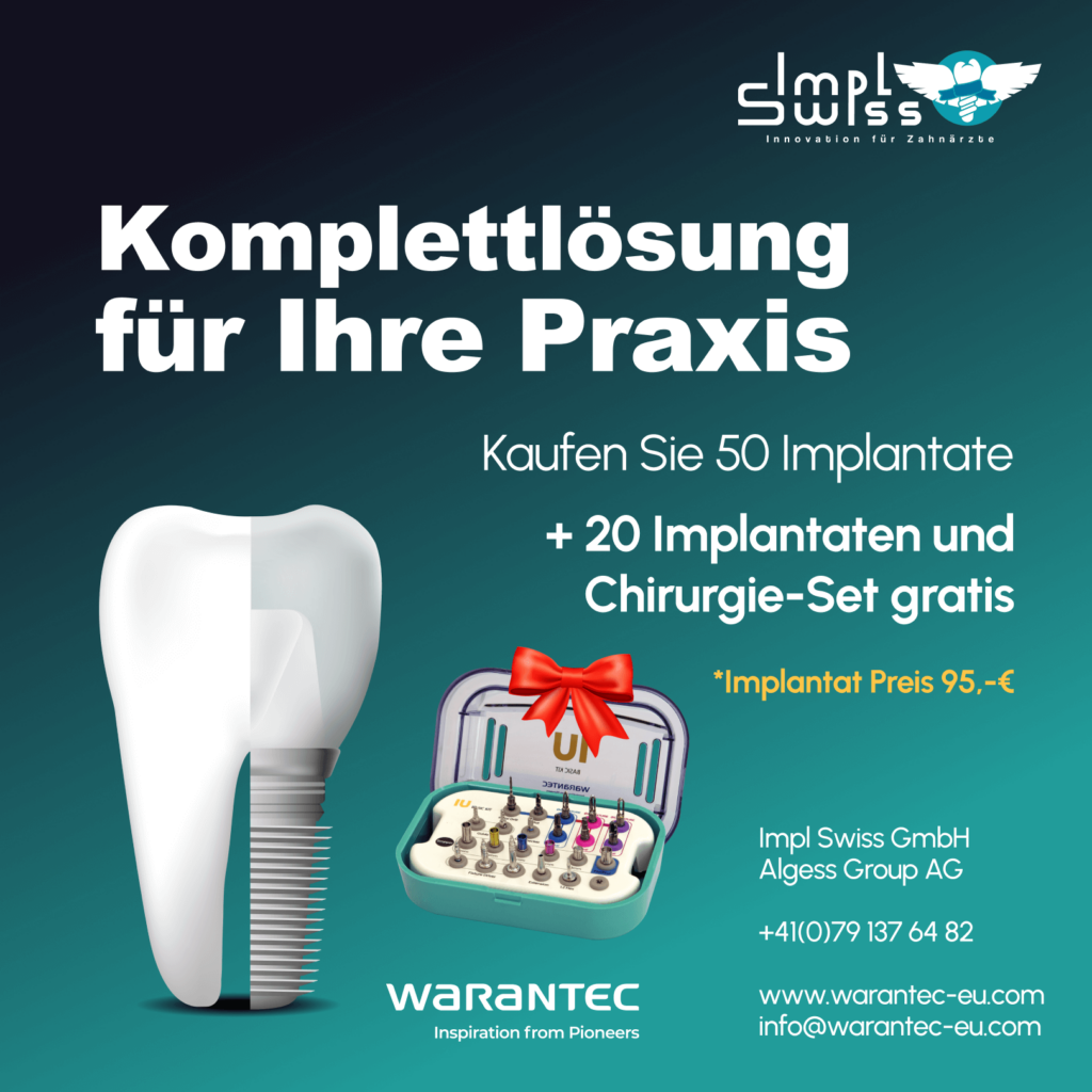 Special Offers, Allgemein WARANTEC – Everything Your Dental Practice Needs! Posted by Helen On 5. February 2025 0 comments Special OfferBuy 50 implants and get:20 additional implants – for free!Premium Surgical Kit IU Full Kit – included as a gift!Price per implant – only €95!Why is Warantec the perfect choice?High-tech solutions for comfortable work.Outstanding quality and durability.A complete package for maximum efficiency.Visit us at IDS Cologne 2025 and see for yourself!Hall 11.3, Stand C 40 – E 59Don’t miss this exclusive offer – available for a limited time only! Contact us:📞 +41 (0)79 137 64 82📞 +49(0)7621 161 37 25 🌐 www.warantec-eu.com ✉ info@warantec-eu.com Leave your feedback Please enable JavaScript in your browser to complete this form.Name *Email *Telephone *Leave a review *Leave a review See all reviews
